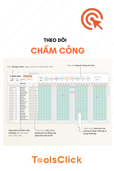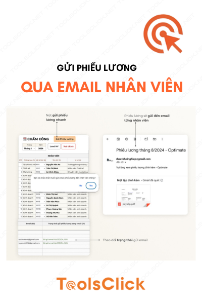 Bạn có đang ‘ám ảnh’ mỗi dịp cuối tháng khi phải vật lộn với hàng tá file Excel rời rạc? Nhân viên phàn nàn vì tính sai lương, bạn thì đau đầu vì công thức bảng tính lỗi liên tục? Quên những mẫu bảng chấm công excel thủ công lạc hậu đi! Hãy để công nghệ tự động hóa giải phóng bạn. ToolsClick mang đến giải pháp Bảng chấm công & Tính lương tự động trên Google Sheets – Một ‘phần mềm HR thu nhỏ’ giúp bạn quản lý nhân sự, tự động tính lương và gửi phiếu lương qua email chỉ với 1 cú click chuột. Mua một lần, thảnh thơi trọn đời.